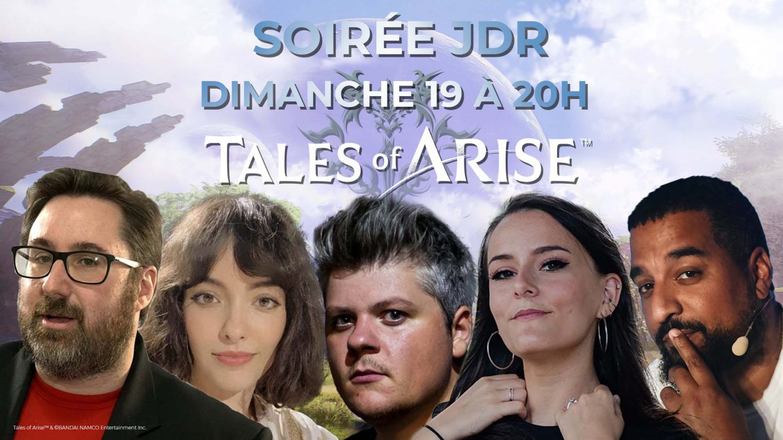 Pour promouvoir le jeu vidéo Tales of Arise, un JDR (Jeux De Rôle) ainsi qu’une session de découverte du jeu sur PS5 ont été diffusés en direct sur Twitch le 19 septembre 2021.